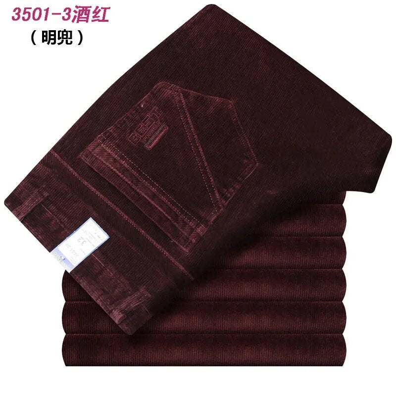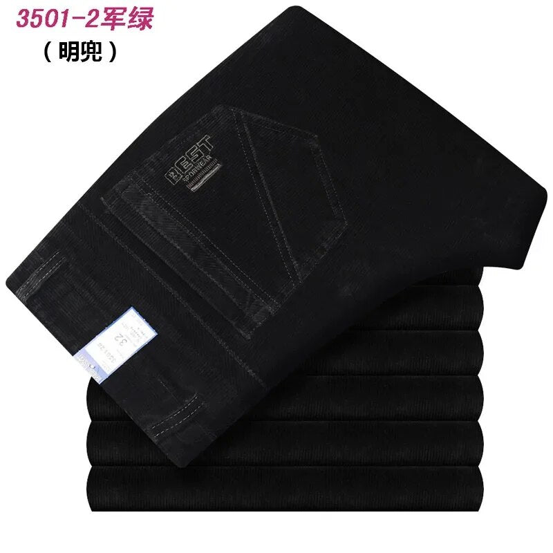 Bonsir Autumn and winter Pants Men Black Khaki Corduroy Business Casual loose elastic Straight pants thick trousers Male