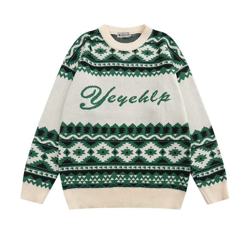 Bonsir Autumn and Winter Patchwork Letter Knitted Casual Pullover Sweaters Men's and Women's High Street Oversized O Neck Baggy Clothes
