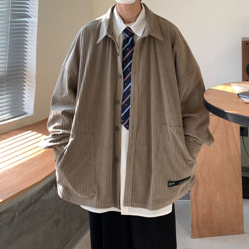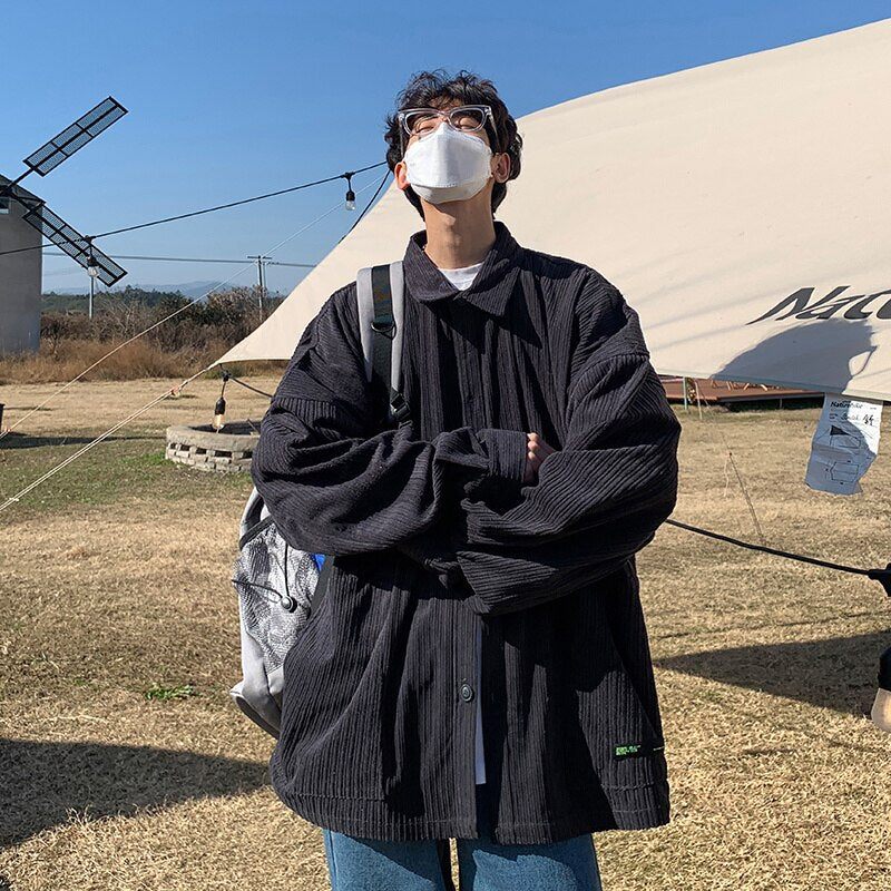 Bonsir Autumn Khaki Black Corduroy Jacket Men Fashion Retro Oversized Lapel Jackets Mens Casual Streetwear Loose Bomber Jacket Men Coat