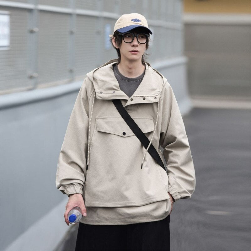 Bonsir Autumn Pullover Jacket Men Fashion Casual Big Pocket Hooded Jackets Mens Japanese Streetwear Hip Hop Loose Bomber Jacket Men