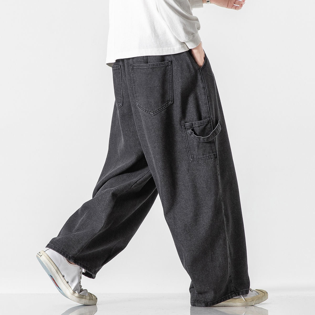 Bonsir Big Pocket Straight Jeans Oversize Trend Fashion Casual Mopping Overalls Trousers Hiphop High Street Loose Washed Denim Pants