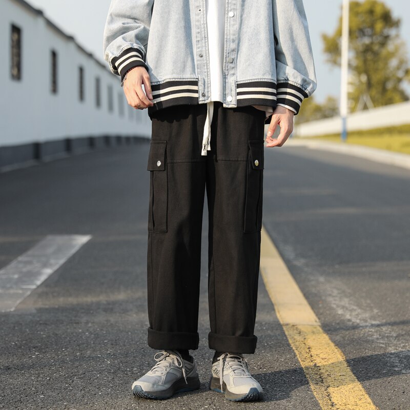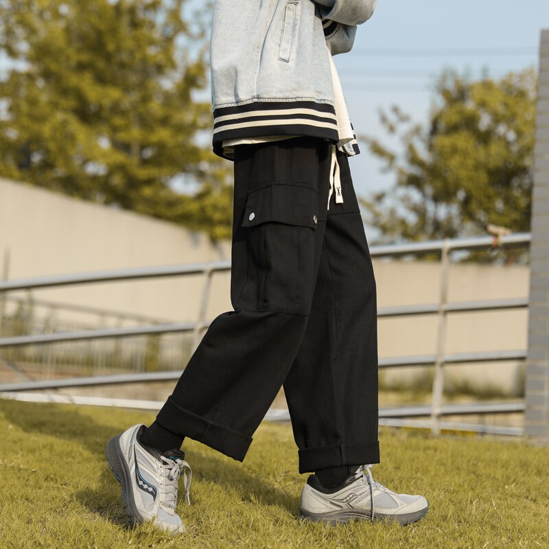 Bonsir Big Pockets Casual Cargo Pants Men's Streetwear Vintage Trousers Hip-hop Overalls Fashion Loose Straight Wide Leg Pants Men