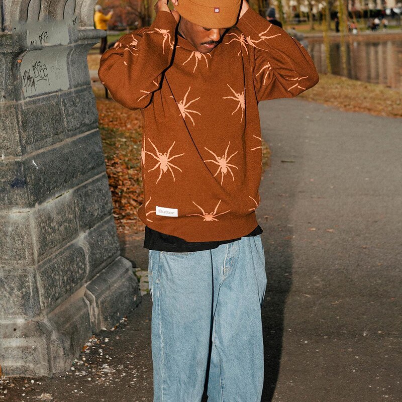 Bonsir Vintage Spider Pattern Knit Sweater Men Fall Winter Casual Long Sleeve Crew Neck Knitting Pullovers For Mens Sweaters Streetwear