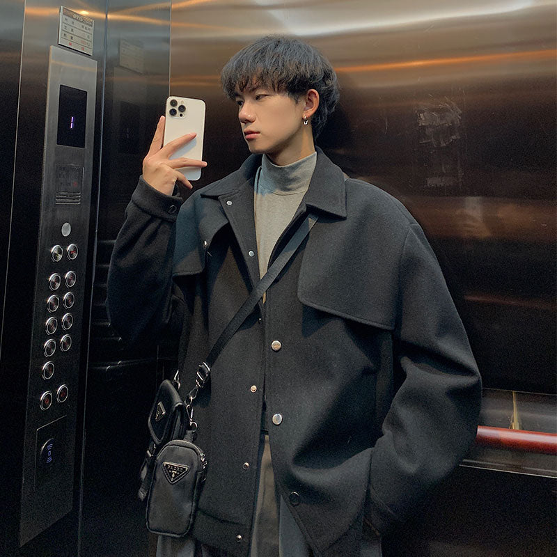 sanyamk Winter Men's Lapel Collar Cashmere Woolen Blends 3 Color Coats Keep Warm Snow Jackets Clothes High-quality Parkas M-3XL