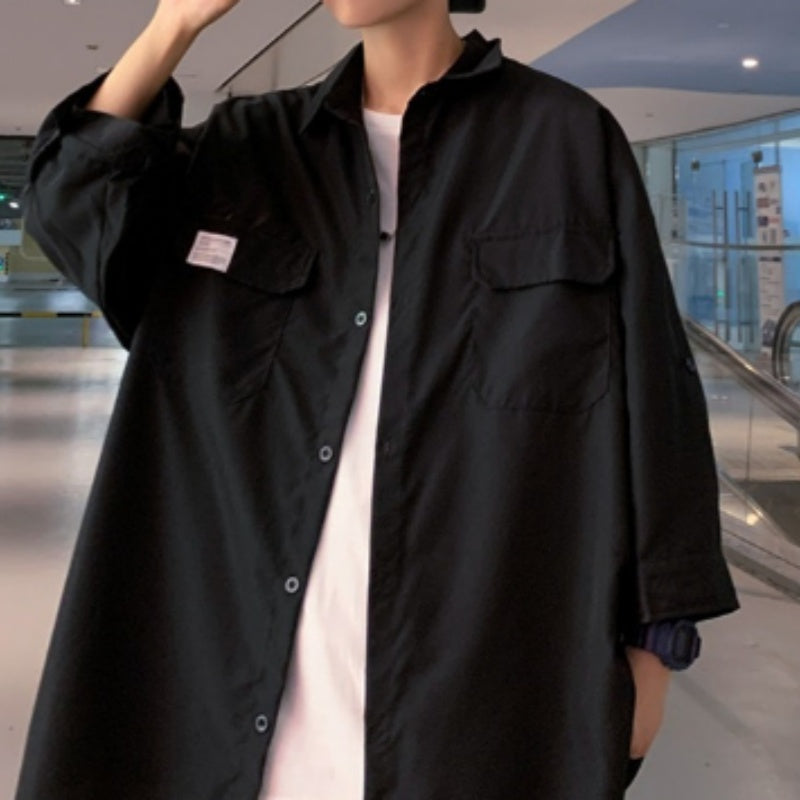 sanyamk Workwear Shirt Men's Short Sleeve Summer Ice Silk Thin Shirt 2024 Loose Half Sleeve Top Coat