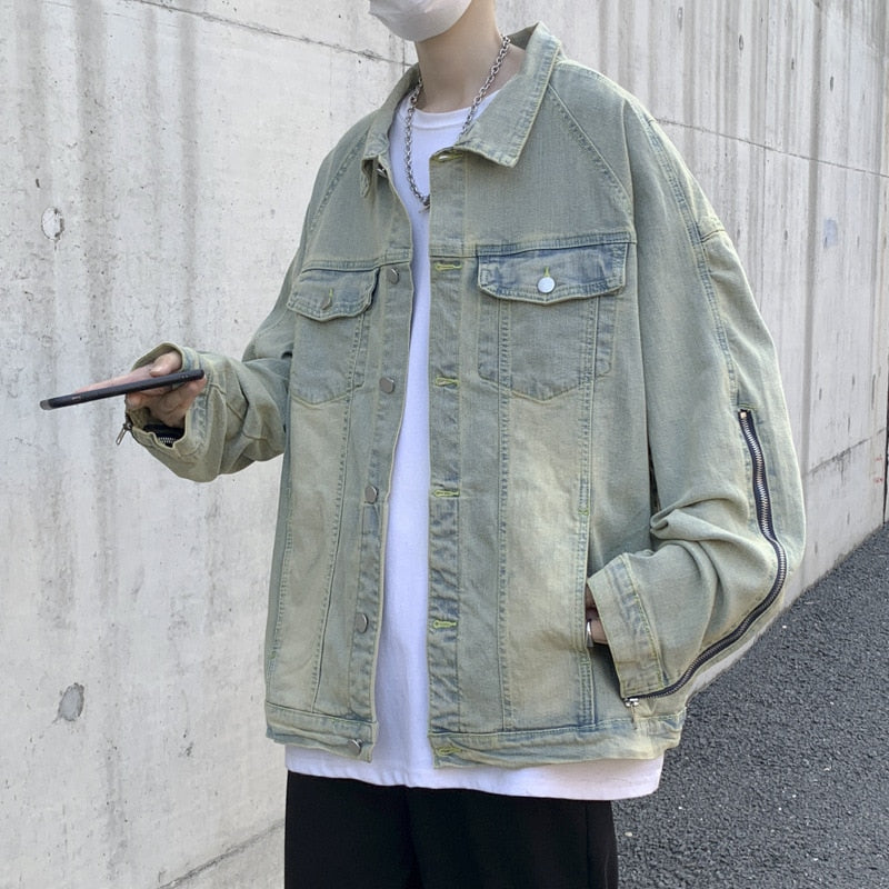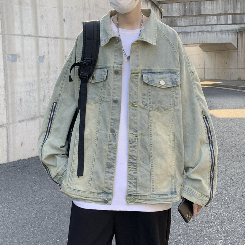 sanyamk Tide Denim Jacket Men's Spring and Autumn Korean Street Vintage Hip-hop Casual Zipper Long-sleeved Coat Cardigan