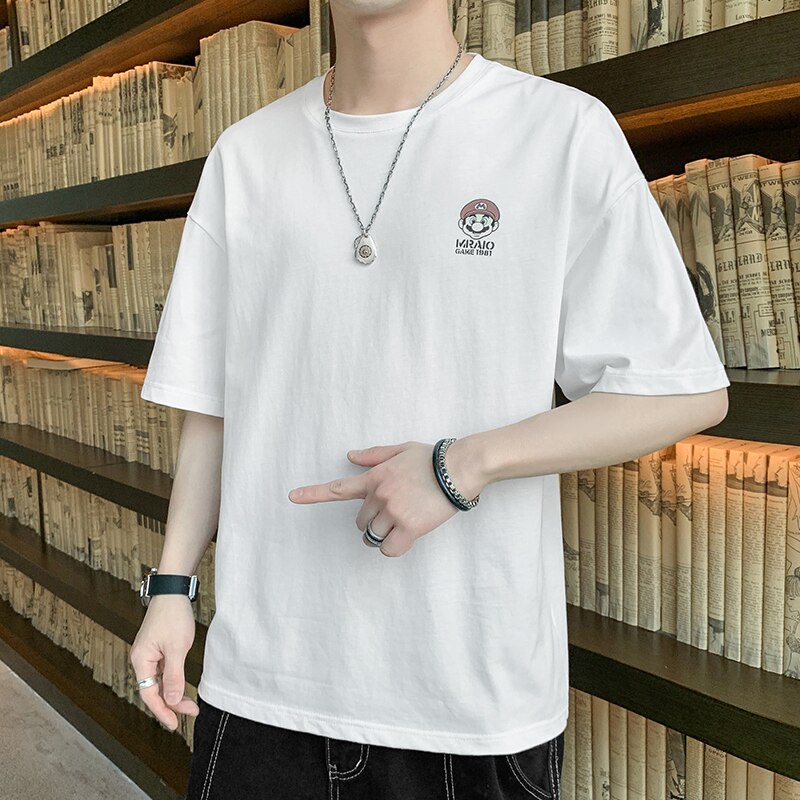 sanyamk Waffle Creative Cartoon Character Men's T-Shirt Loose Round Neck Short-Sleeved Korean Version Men's Top Summer Fashion T-Shirt