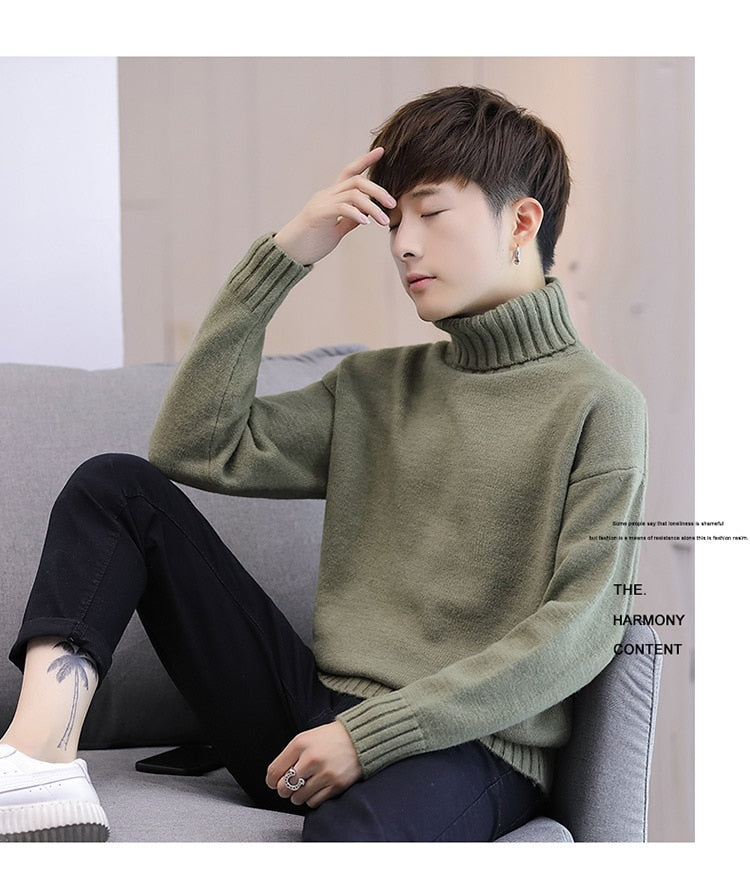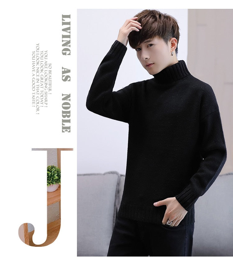 sanyamk Winter Men's New Turtleneck Sweater Korean Knit Shirt Men's Youth Turtleneck Sweater Shirt Solid Color