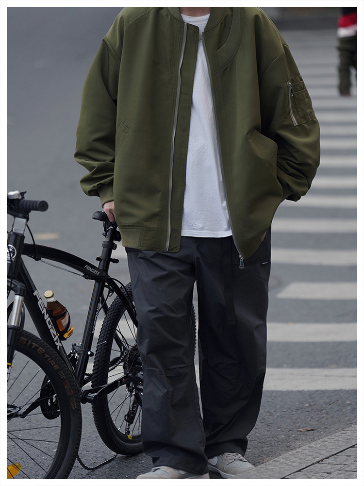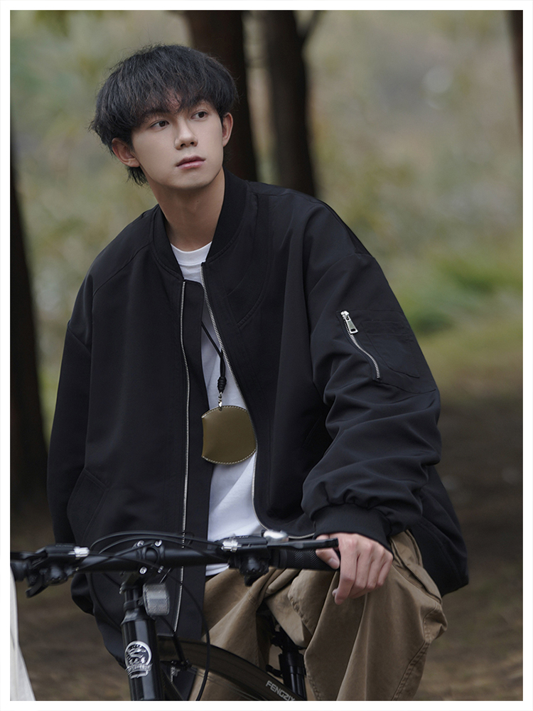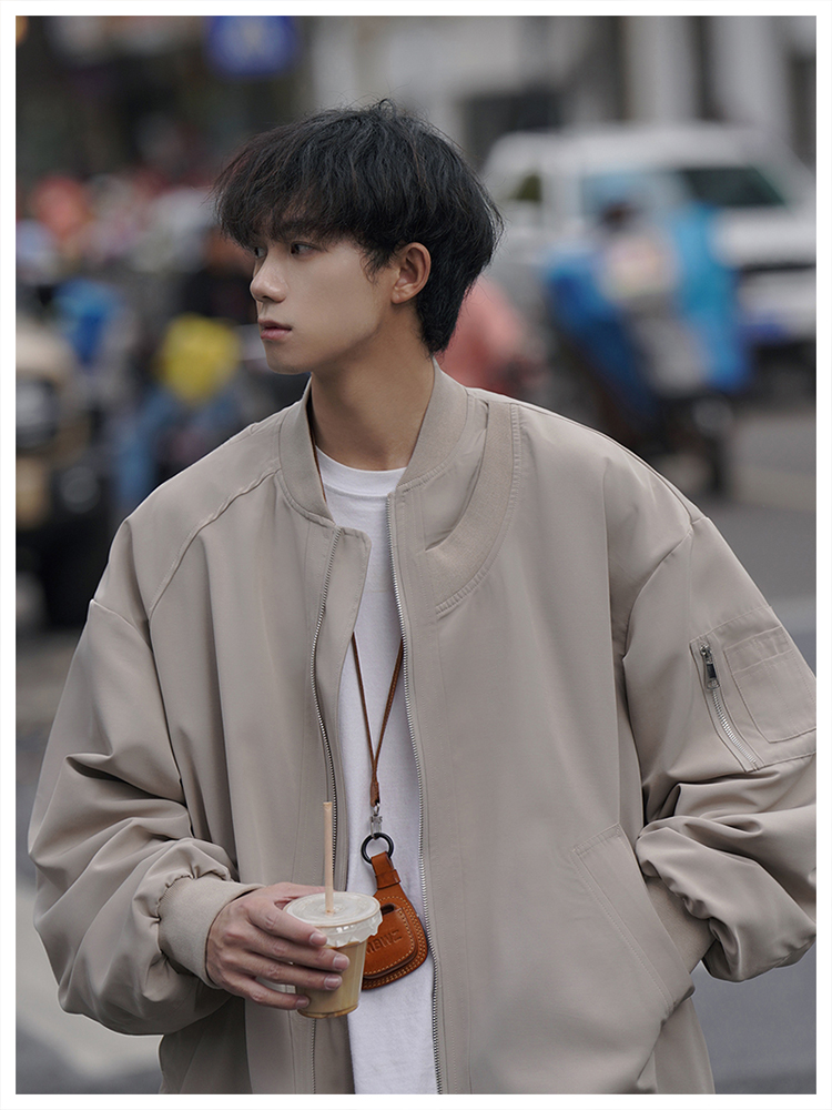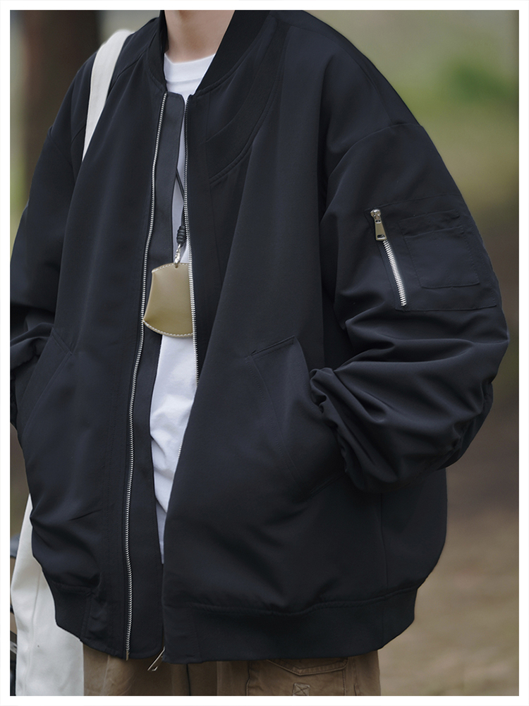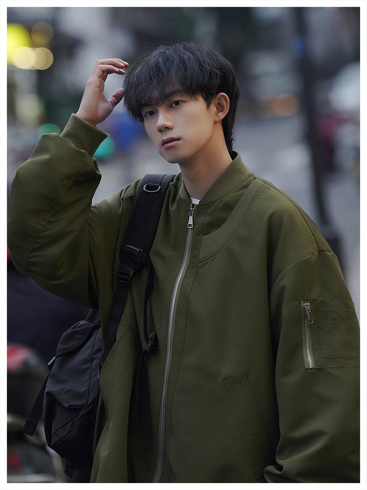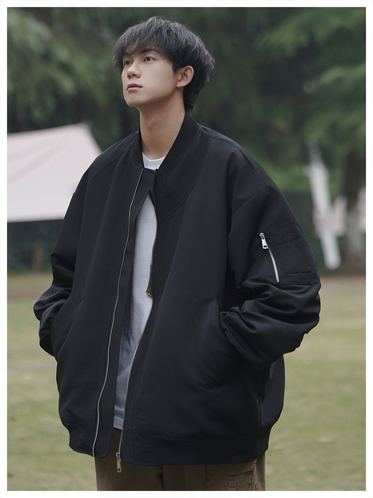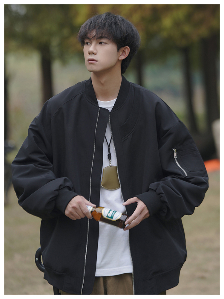 Bonsir Casual Hip Hop Fall Trendy Loose High Street Stand Collar Pilot Jacket